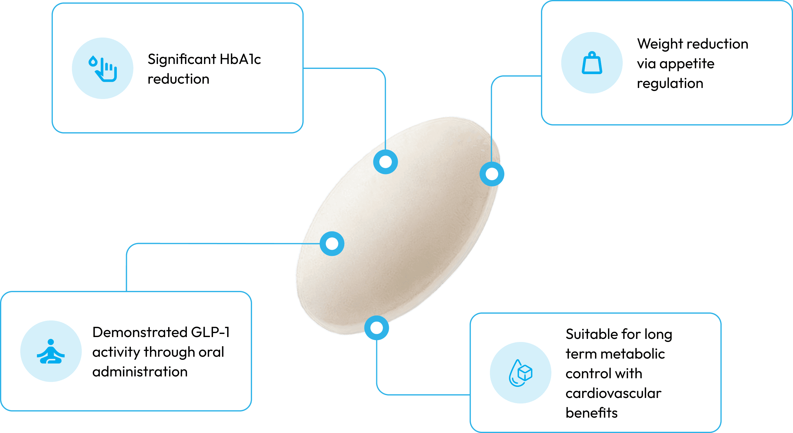 It provides sustained GLP-1 receptor activation, supporting glucose-dependent insulin secretion, glucagon suppression, and improved glycemic control in adults with type 2 diabetes mellitus, offering a clinically validated non-injectable incretin-based therapy option.